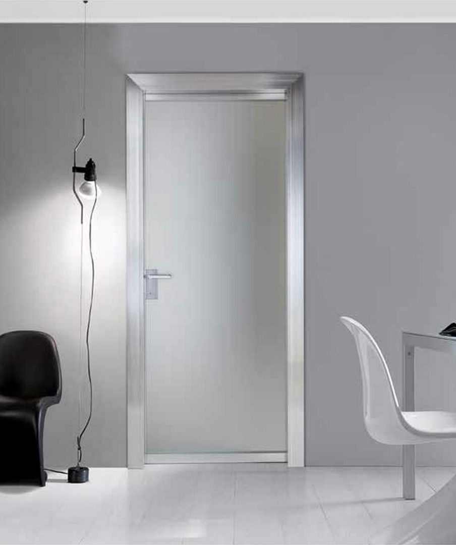 Дверь с собственным характером: дверное полотно представляет собой цельное полотно из каленого безопасного стекла, укомплектованное фурнитурой Hi-tech. Стекло может быть матовое, прозрачное, с пескоструйным декором, с гравировкой, декоры из цветного муранского стекла.