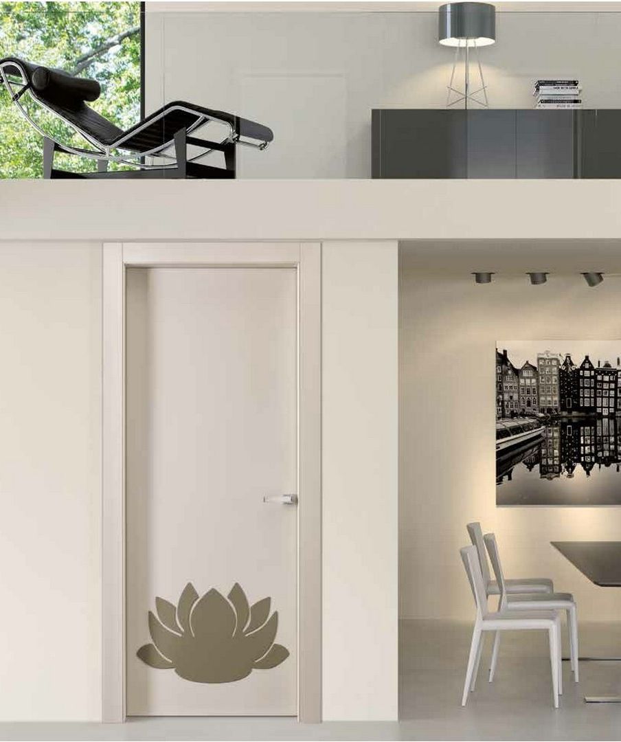 Стилизованные флореальные декоры, деревья, натуральные стихии украшают гладкое дверное полотно. Дверь крашеная матовая или глянцевая в любом фирменном цвете Бертолотто или гаммы RAL. Коллекцию глухих дверей дополняют створки из стекла с пескоструйными или гравированными декорами Natura, а также сверхпрозрачные стекла с эксклюзивным декором из кислотной вытравки.