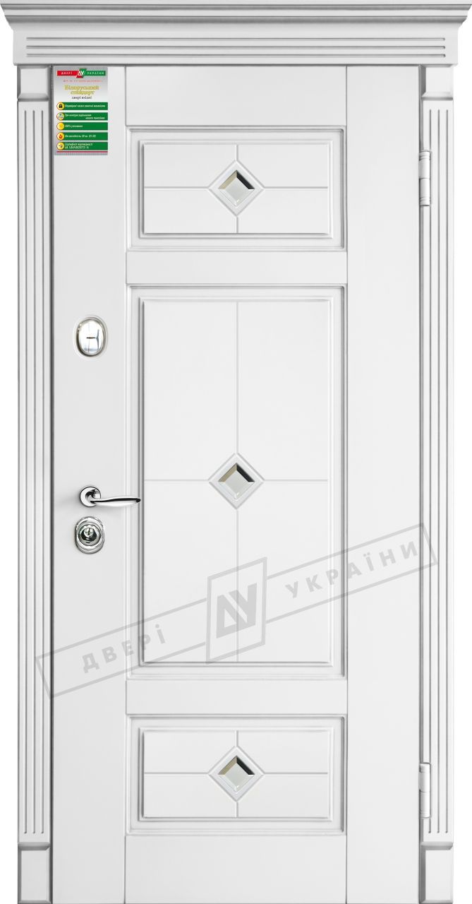 Представляем Вашему вниманию Входные двери одного из ведущих производителей - Двери Украины. Данная модель доступна в серии «Белорусский стандарт». Двери из серии "Белорусский стандарт" - это мощная конструкция проверена временем, где продуман каждый узел, каждая деталь - от формы до толщины металла. Металлическая часть двери сделана из набора различных несущих деталей, металлов различной толщины для того, чтобы придать конструкции дверей жесткость и надежность в использовании. Центральный лист металла, к которому все привыкли в простых дверях, выполняет функцию только заполнение и стабилизации. Защитную и несущую функцию выполняют два мощных цельногнутых швеллера из холоднокатаного металла соединенных ребрами жесткости в разных плоскостях. Замковые механизмы спрятаны внутрь одного из швеллеров. Это исключает возможность доступа к замкам третьих лиц. В дверях серии «Белорусский стандарт» присутствуют четыре контура уплотнения, вместо стандартных двух (три на холсте и один на коробке) и это значительно повышает ее тепловые и звукоизоляционные характеристики. Комплектуется замками KALE, Securemme, Mottura, Riccardi, Mul-T-lock. Эту модель можно заказать в коллекциях "СИТИ" и "ИНТЕР".