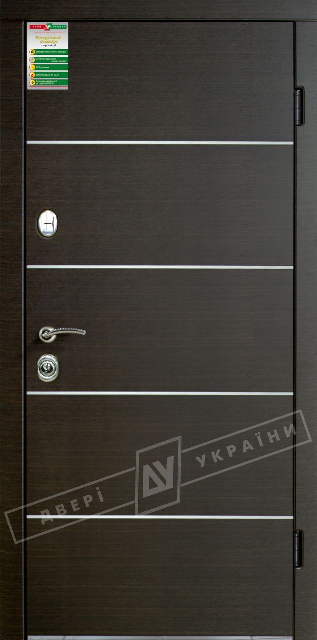 Представляем Вашему вниманию Входные двери одного из ведущих производителей - Двери Украины. Данная модель доступна в серии «СИТИ». Особенностью этих дверей является необычное решение утепления дверного полотна. По законам физики все конструкции утепляются снаружи, что в разы повышает их тепловые характеристики. Именно этот принцип нам удалось воплотить в конструкции дверей серии "Сити": МДФ-панель, затем утеплитель, а за ним металл. Также в этих дверях присутствуют три контура уплотнения вместо стандартных двух (два на холсте и один на коробке). Замковые механизмы защищены специальными металлическими коробками. Уникальным является и то, что дверное полотно согнутое из цельного листа металла и дополнительно усилено ребрами жесткости. Комплектуется замками KALE и Riccardi. Эту модель можно заказать в коллекциях "ИНТЕР" и "Белорусский стандарт".
