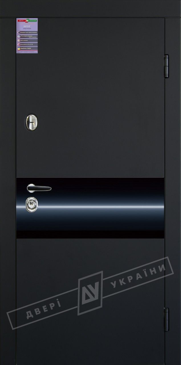 Представляємо Вашій увазі Вхідні двері одного з провідних виробників – Двері України. Дана модель доступна в серії «ІНТЕР» та володіє наступними характеристиками: унікальна система кріплення зовнішніх і внутрішніх накладок, збільшена взломостійкість за рахунок 2 мм. товщини зовнішнього листа металу на полотні і 1.7 мм. металу на коробці, антивандальне 30% потовщення зовнішнього захисного листа металу до 3.2 мм., посилена конструкція полотна за рахунок відсутності фрезерування під замкові планки замків «Securemme» і «Mottura», підвищена теплоізоляція, шумоізоляція і захист від конденсату всередині полотна.