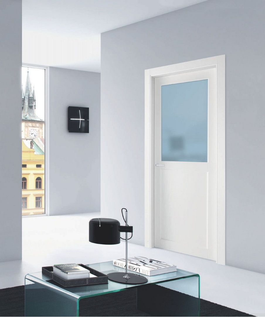 Двері з власним характером: дверне полотно представляє собою цілісне полотно з розжареного безпечного скла, укомплектоване фурнітурою Hi-tech. Скло може бути матове, прозоре, з піскострумним декором, з гравіюванням, декори з кольорового муранського скла.