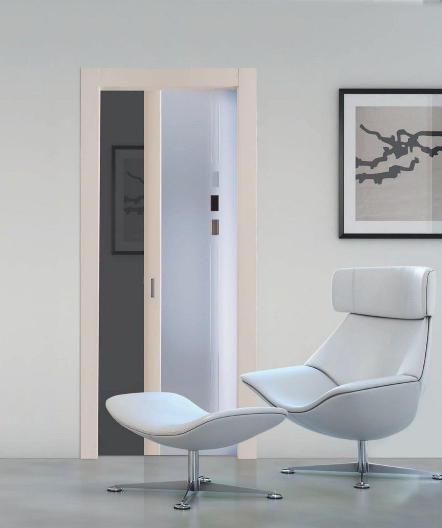 Двері з власним характером: дверне полотно представляє собою цілісне полотно з розжареного безпечного скла, укомплектоване фурнітурою Hi-tech. Скло може бути матове, прозоре, з піскострумним декором, з гравіюванням, декори з кольорового муранського скла.