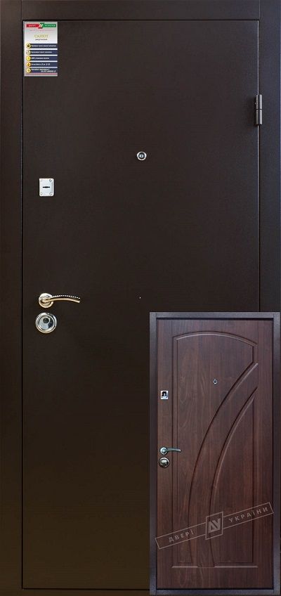 Представляємо Вашій увазі Вхідні двері одного з провідних виробників – Двері України. Дана модель доступна в серії «САЛЮТ». Двері Салют метал, МДФ" відрізняється від звичайних тим, що зовні вони виконані з рівного металу, а всередині облагороджені панеллю МДФ і беруть участь в дизайні приміщення, в залежності від малюнків панелей і покриттів декоративних плівок. Вони також є універсальними у використанні як для під'їздів, так і для вулиці. Невисока ціна і, при достатній міцності, невелика вага. Комплектується замками S.A.P."