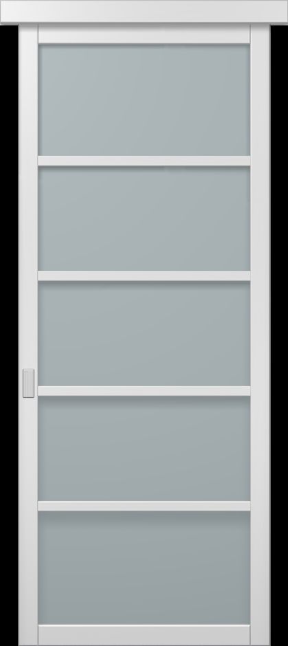 Застосовується розсувна система без нижньої направляючої (верхній підвіс). По низу полотна зроблений паз, в який входить стопор, щоб полотно не хиталося під час руху. Стопор кріпиться до підлоги в одній точці, таким чином, полотно рухається від стоєвої до стоєвої (тобто стопор не виходить із зачеплення за межі полотна). Полотна можуть бути як стельового, так і настінного кріплення. Можлива конструкція, коли одне полотно чіпляє друге - і обидва йдуть на стіну (максимум три полотна). У цьому випадку застосовується нижній зачіп (опція за окремою вартістю). Можлива конструкція: два полотна розсуваються в сторони - вліво і вправо. В цьому випадку необхідно враховувати, що стикуватися вони будуть нормально за умови, що висота полотен не більше 2100 мм. В іншому випадку, через велику висоту полотен, буде нерівномірне стикування між ними при закритому стані.